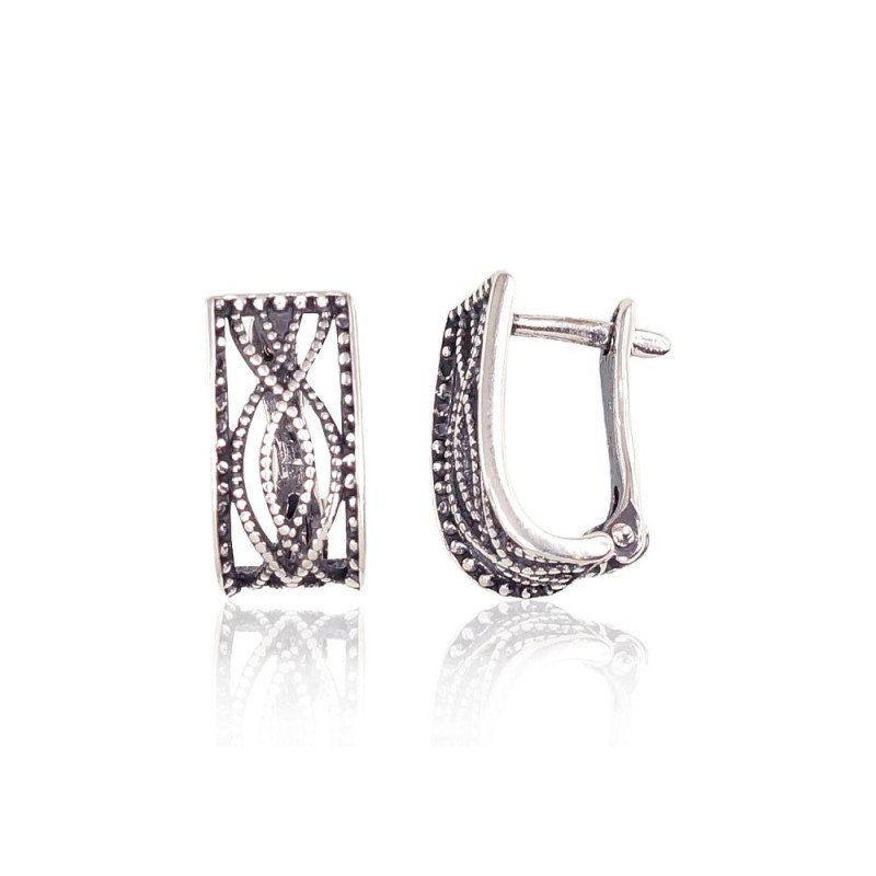 Silver earrings with 'english' lock, Silver 925°, oxide (Plating)