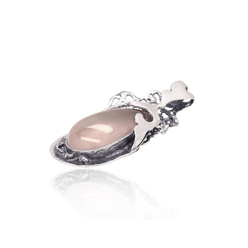 Silver pendant, Silver 925°, oxide (Plating), Pink Quarz