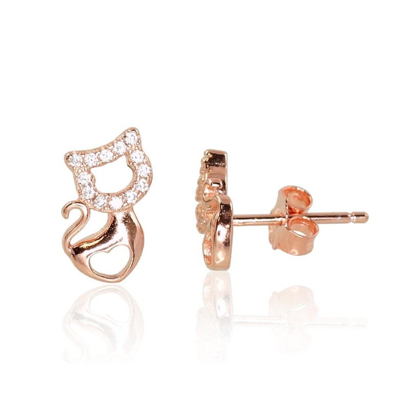 Silver stud earrings, Silver 925°, red gold (Plating), Zirkons