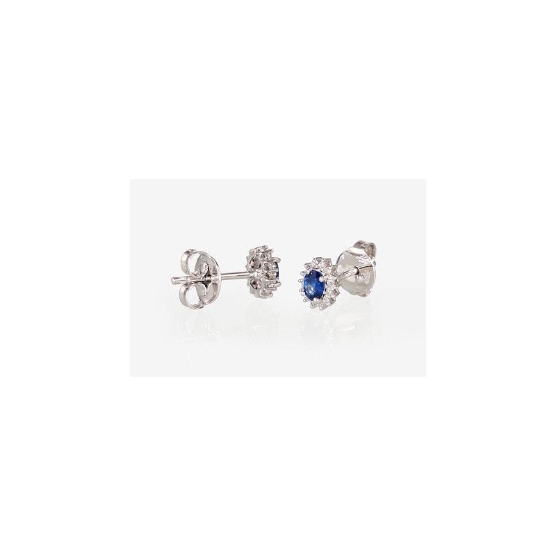 Gold classic studs earrings, White Gold 585°, Diamonds, Sapphire