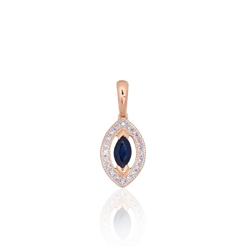 Gold pendant, Red Gold 585°, Rhodium (Plating), Diamonds, Sapphire
