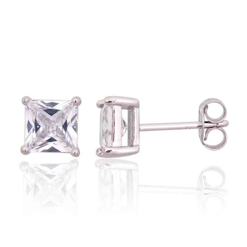 Silver stud earrings, Silver 925°, Rhodium (Plating), Zirkons