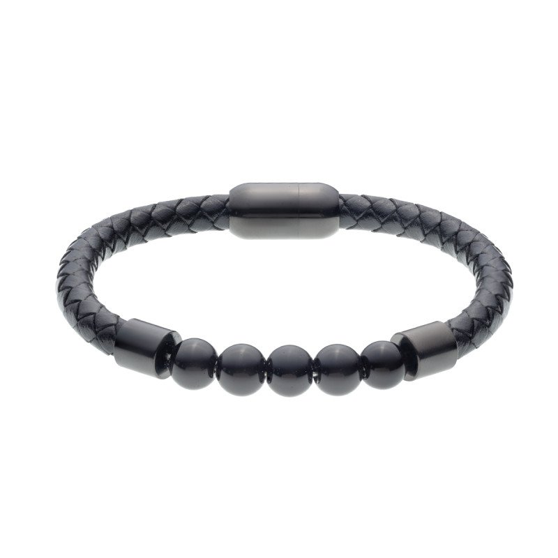 Браслет из Нержавеющей Стали с Кожаным Ремешком и Камнями Турмалина