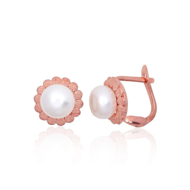 Серебряные серьги на английском замке, Серебро 925°, красное золото (покрытие), Жемчуг
