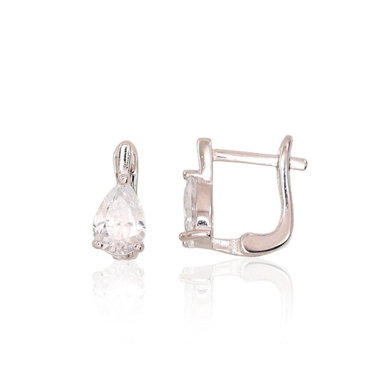 Серебряные серьги на английском замке, Серебро 925°, родий (покрытие), Цирконы