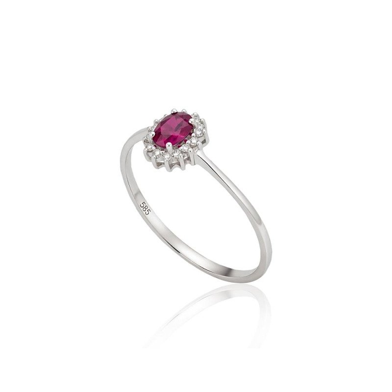 Золотое кольцо, Белое Золото 585°, Бриллианты, Рубин