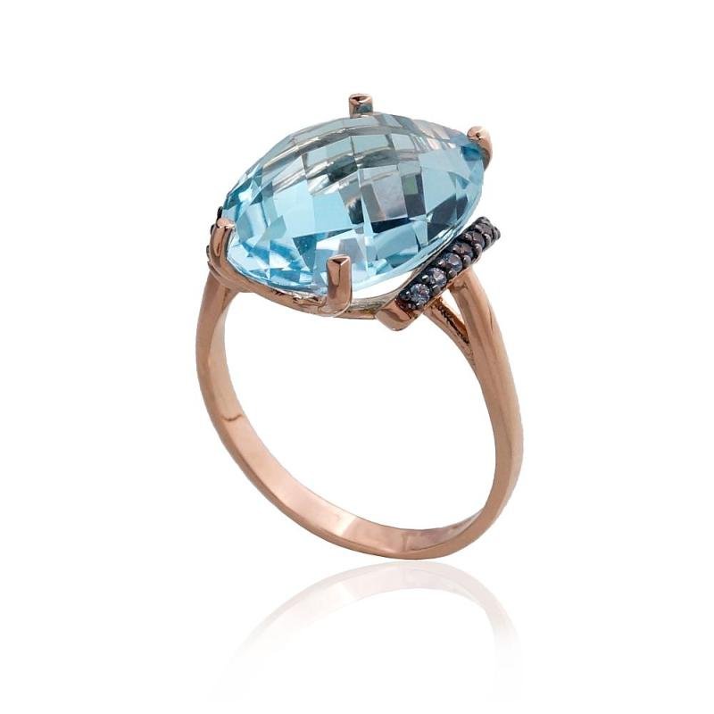 Золотое кольцо, Красное Золото 585°, родий (покрытие), Цирконы, Небесно-голубой топаз